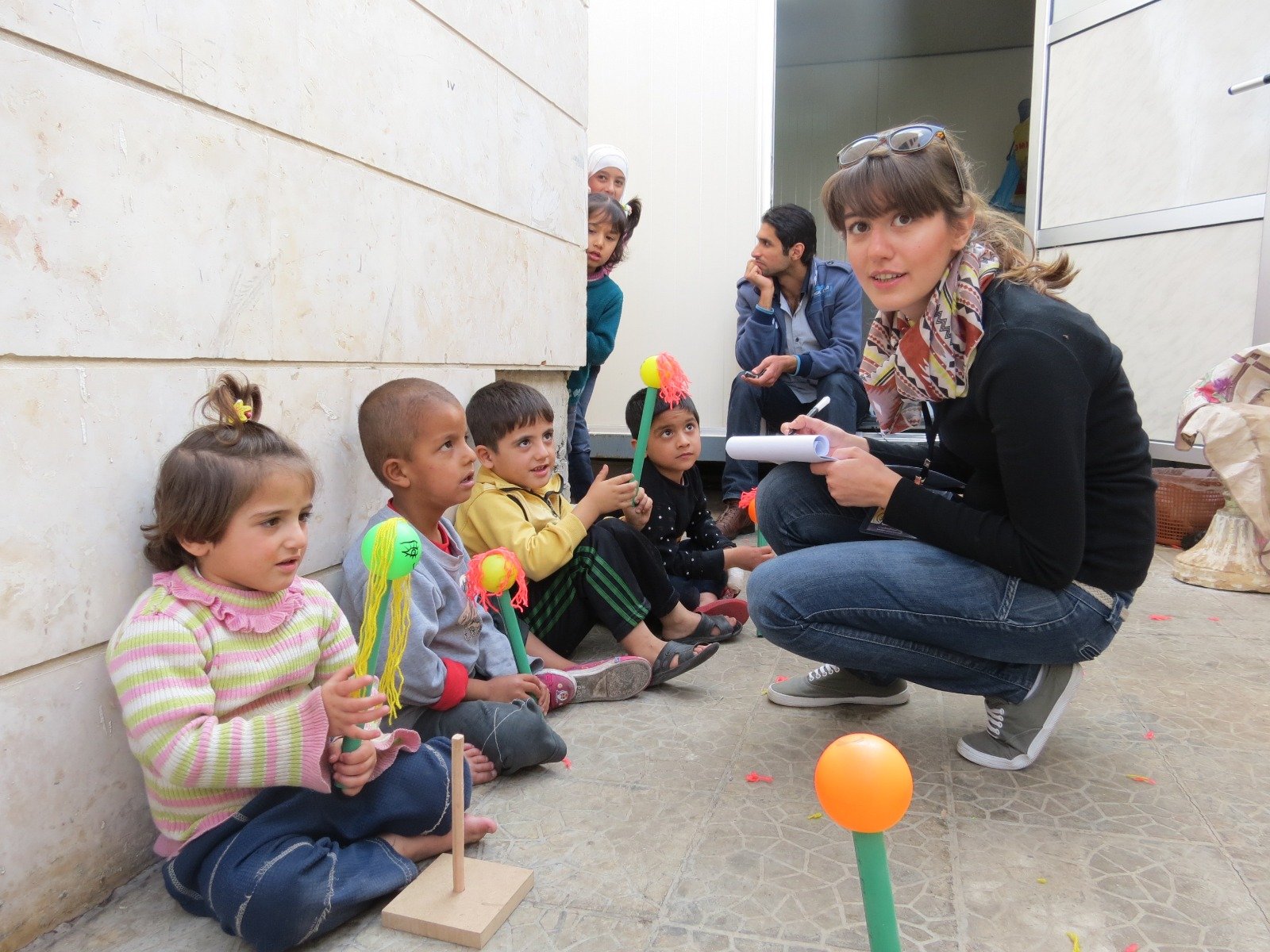 Nathalie leading art therapy with refugees.